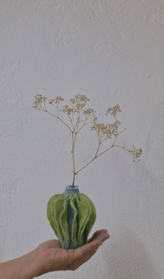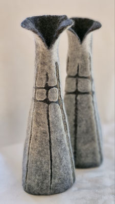 Blütenvasen haben einen Korpus aus Glas und eine feine Hülle aus edlen textilen Materialien.